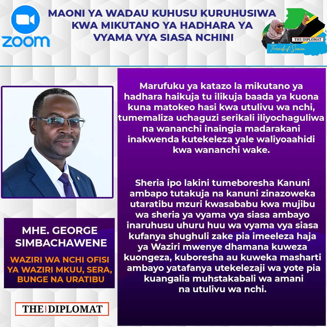 "Sheria ipo lakini tumeboresha Kanuni ambapo tutakuja na kanuni zinazoweka utaratibu mzuri kwasababu kwa mujibu wa sheria ya vyama vya siasa ambayo inaruhusu uhuru huu wa vyama vya siasa kufanya shughuli zake pia imeeleza haja ya Waziri
