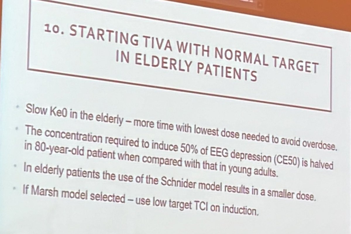 8. Reduce target effect site when starting #TIVA in the elderly pat - start low & go slow