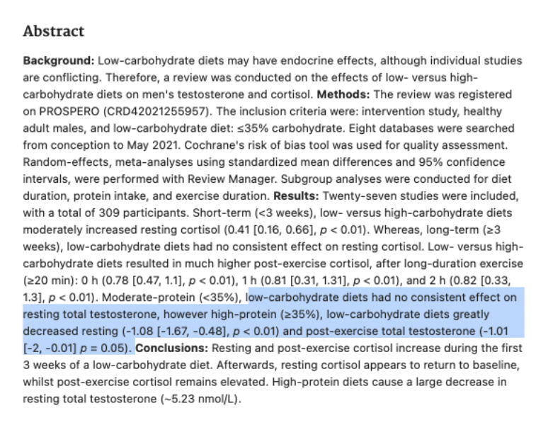 When I switched to a higher carb diet my cholesterol fell and testosterone increased