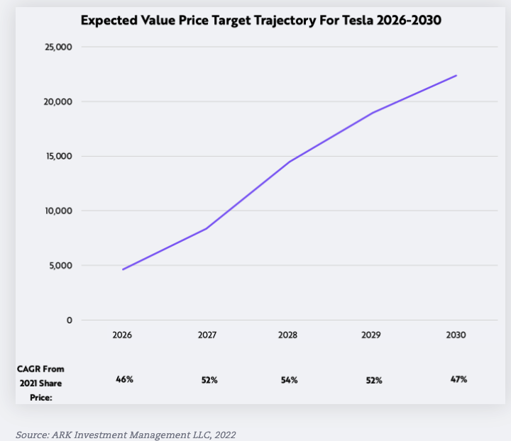 1、按ark invest的最新分析,在不计robottaxi的情况下,2026年特斯拉股价约为500美金