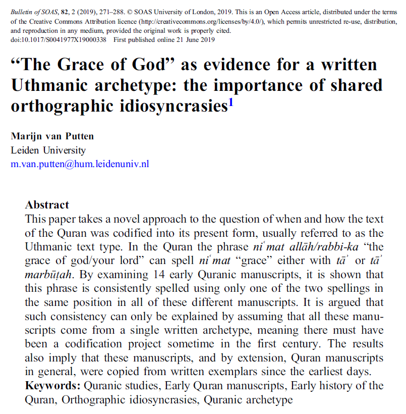The next part of the thread, which explores the standard (but by no means only!) narrative about the compilation of the Quran. Which started with the first caliph ʾAbū Bakr and ends up with the official ʿUṯmānic version.
