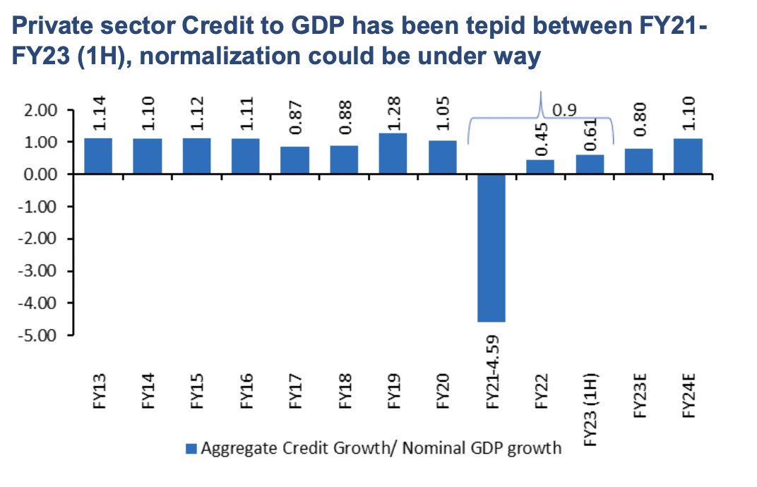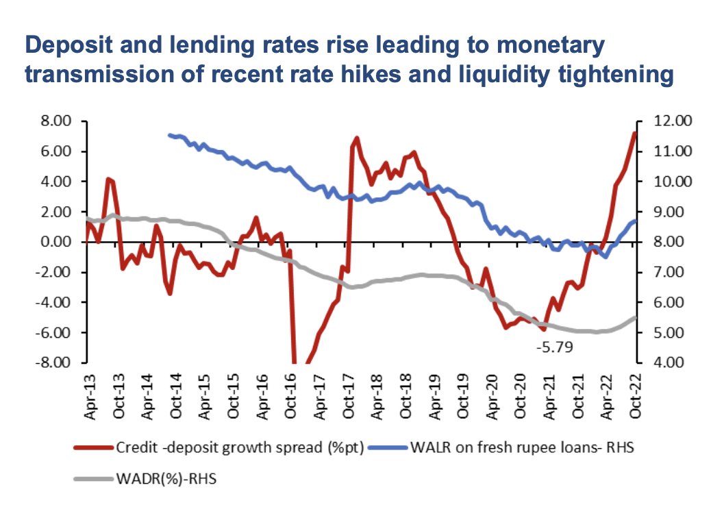 👉 Credit to deposit growth gap has widened significantly, could drive down SLR investments by banks.
