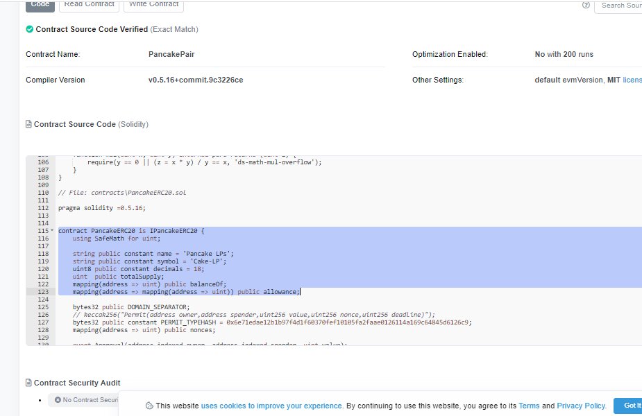 Busca un contrato en pancakeswap y ábrelo en la #blockchain