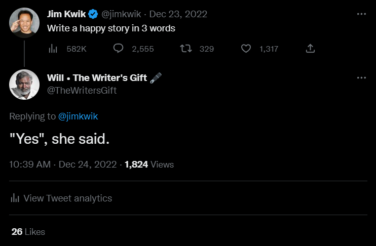 @jimkwik recently posted a tweet asking for a story in 3 words.