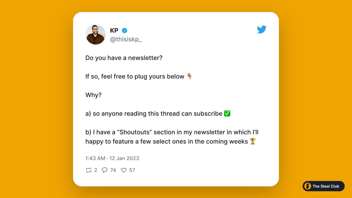 @abhishekshah173 @thejustinwelsh @KateBour #5 - Plug your newsletter…when it makes sense