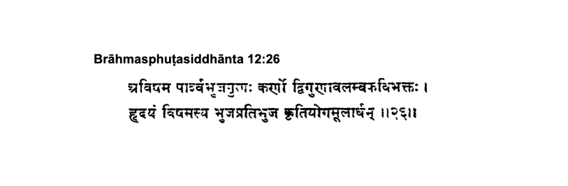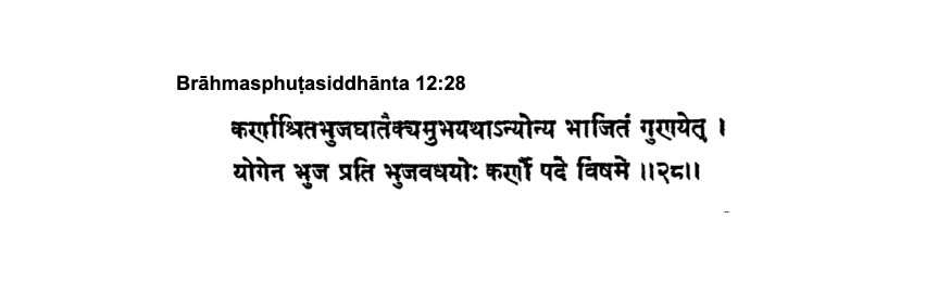 Other than Sutra 12.21, the only other place where the term ą¤¤ą„ą¤°ą¤æą¤ą¤¤ą„ą¤°ą„ą¤ą„ठoccurs in BrÄhmasphuį¹asiddhÄnta, is in sutra 12.27. There the result involved is stated first for a triangle, separately, and then for a ą¤¤ą„ą¤°ą¤æą¤ą¤¤ą„ą¤°ą„ą¤ą„ą¤.