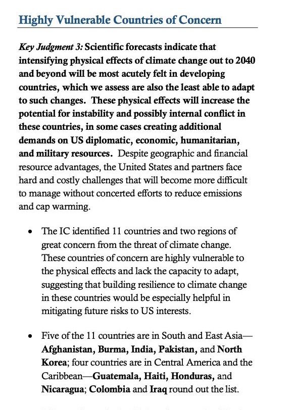 This is no coincidence. The ODNI report argues that only foreign governments and NGOs (i.e., the U.S. and its allies) are prepared to assist highly vulnerable countries. The problem? Poor governance in these countries hinders private investment.