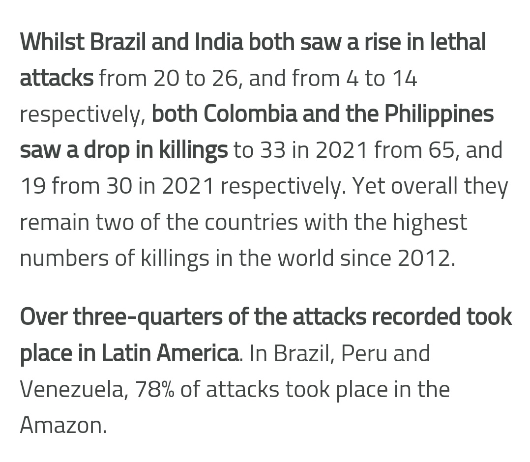 2021 specifically was a horrible year for climate activists; it is estimated that over three-quarters of attacks occurred in Latin America, with target countries being those with historical ties to U.S. interference.
