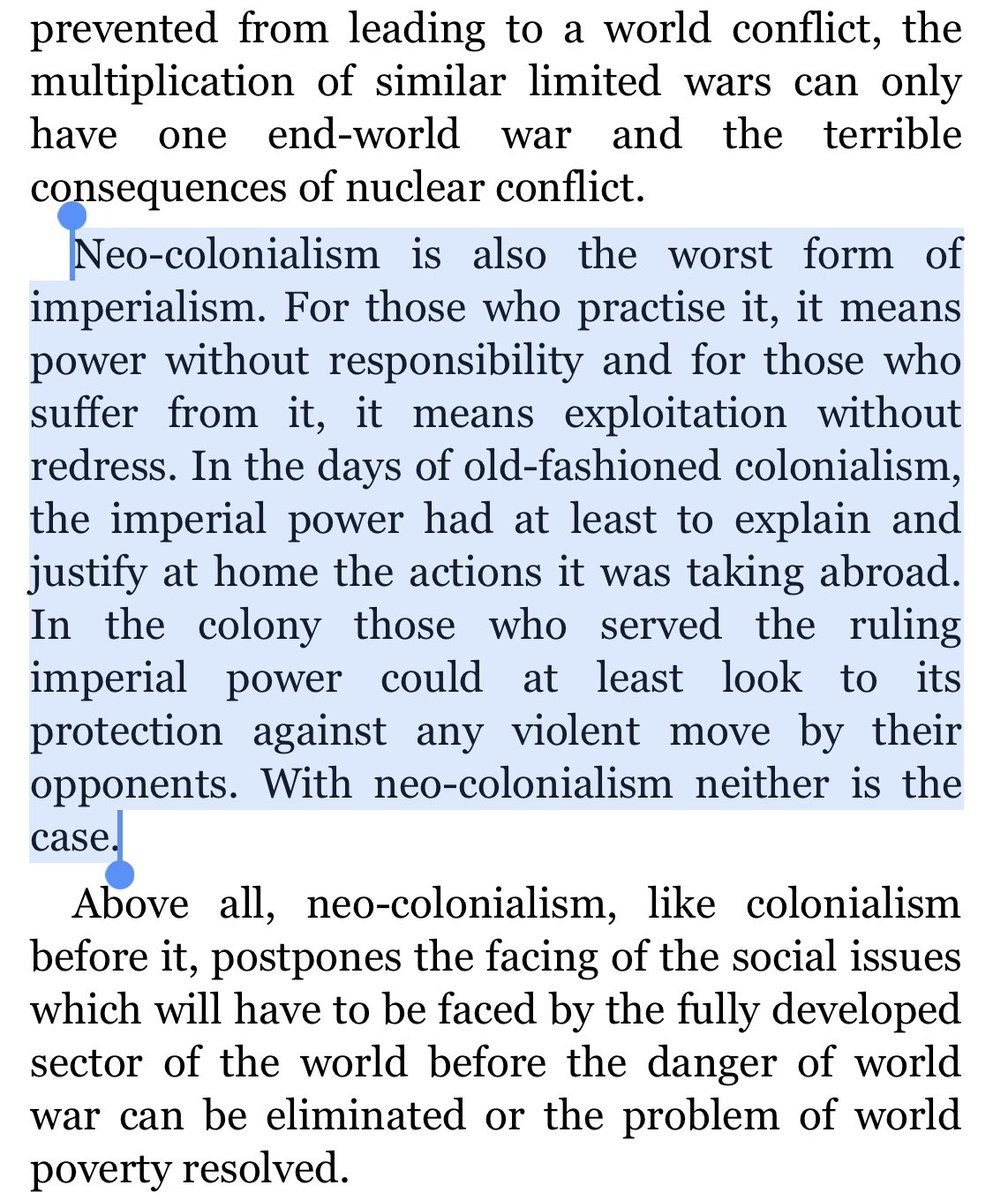 That’s exactly the tendency I mentioned here. The imperialists PREFERRED to neocolonize, but COULDN’T, because of inter-imperialist rivalry.