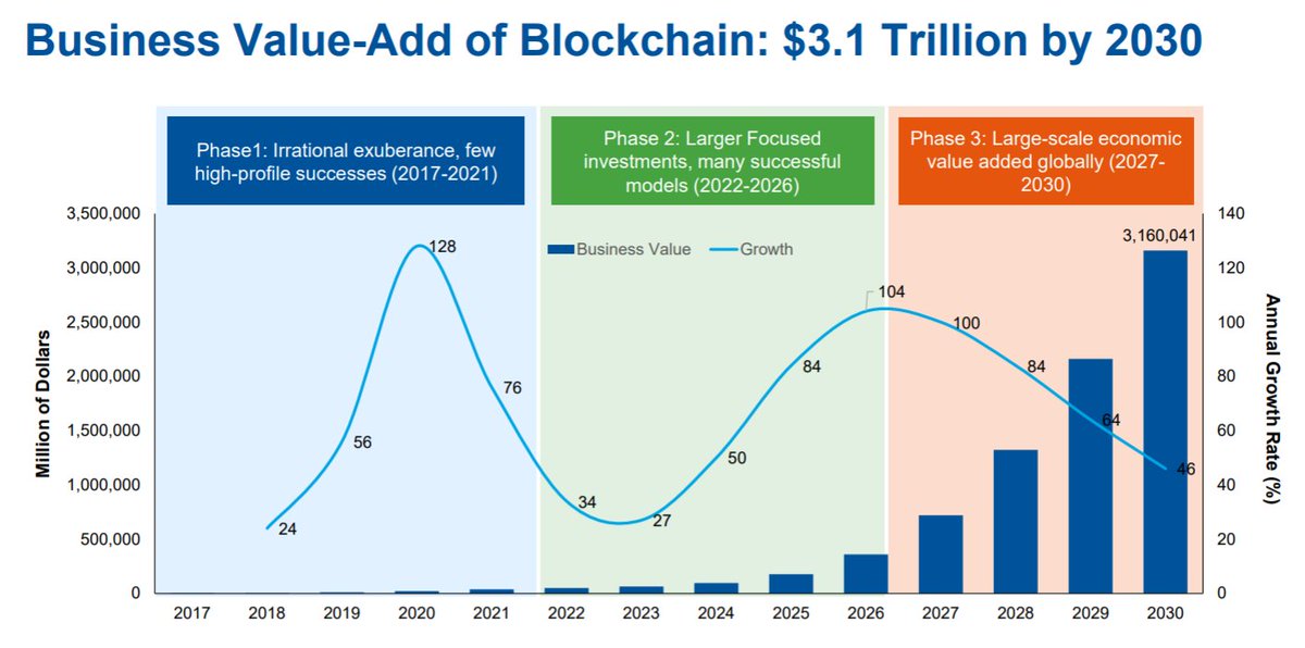 ولهذا يجب أن نفهم لماذا إنفاق الشركات على حلول البلوكتشين يتزايد بشكل لا يتوقف. فوقفًا لتقرير من موقع Statista يتوقع أن يصل إنفاق الشركات على حلول البلوكتشين إلى 19 مليار دولار بحلول عام 2024، بزيادة أكثر من 12 ضعف مقارنة بالإنفاق في عام 2018.