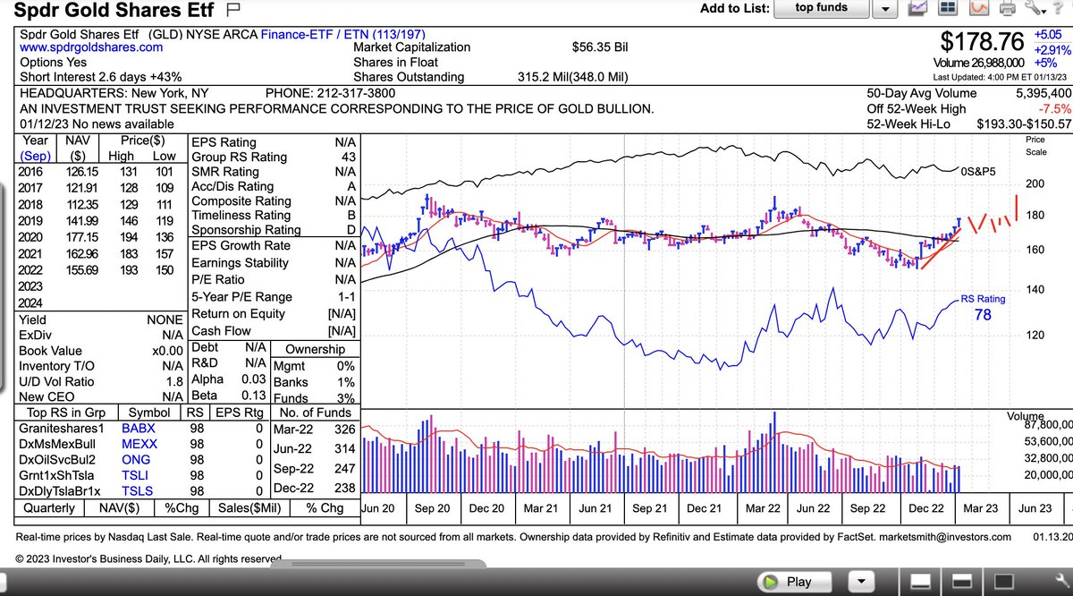 Taking the same approach I took early last year that ended up with a small gain and a giant reversal which is what often happens with gold. Will this time be different, who knows but I will point out that volume has been average these first few weeks...