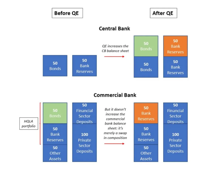 In short: QE never prints real-economy money, regardless of the recipient (banks or non-banks).