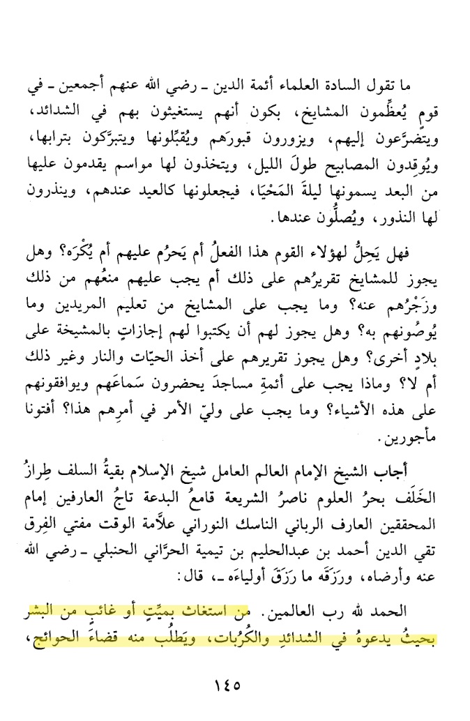 For they unanimously agreed that the dead is not to be called upon and nothing is sought from him, whether he is a Prophet, an old man,etc."