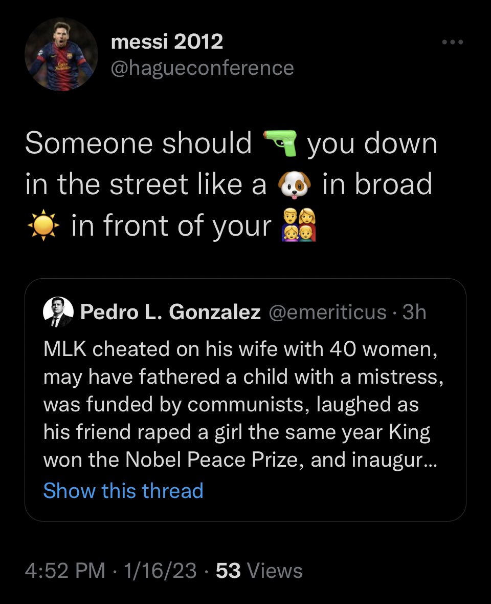 I didn’t have enough characters to describe how verifiably terrible and evil MLK is in a single tweet, give me a break!