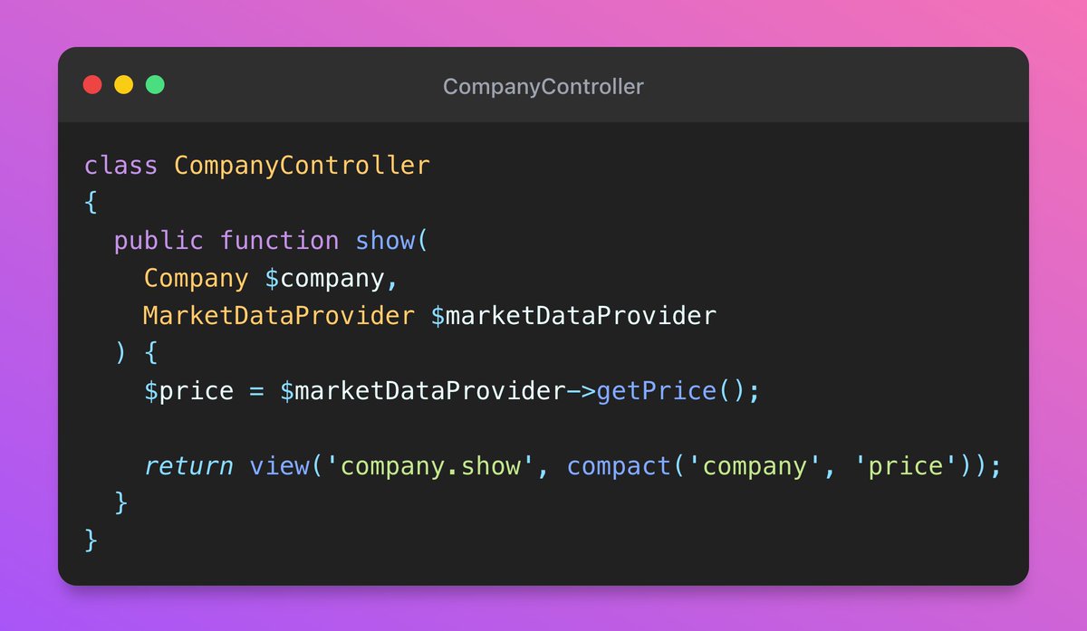 Fortunately, this is pretty standard in Laravel thanks to its awesome service container.
