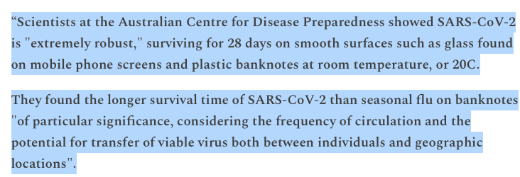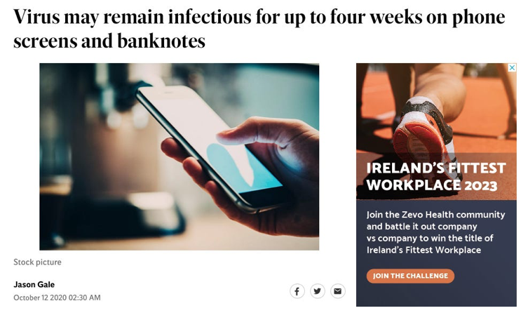 āVirus may remain infectious for up to four weeks on phone screens and banknotesā