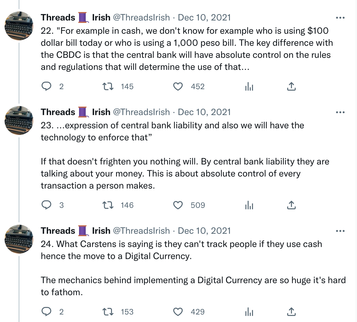 44ā¦spreading on notes and coins, to the burning of notes, to the WEF connections on podcasts and in government and to the media relentlessly giving airtime to the cashless society.