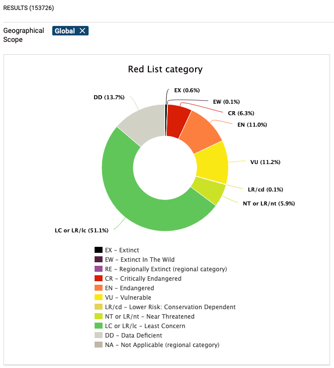 Red List estimate of global extinction (of 153,726 species) is 0.7%