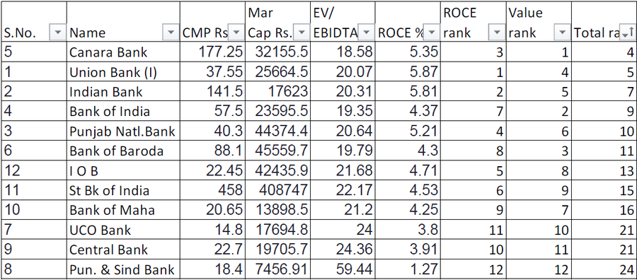 a.Rank all the companies based on ROCE (higher the ROCE better the rank)