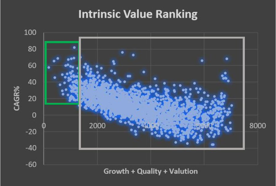 Some of you might know a famous value investor Joel Greenblat. He used a fusion of Quality and Valuation (magic formula). His ranking system works as following. 10/n