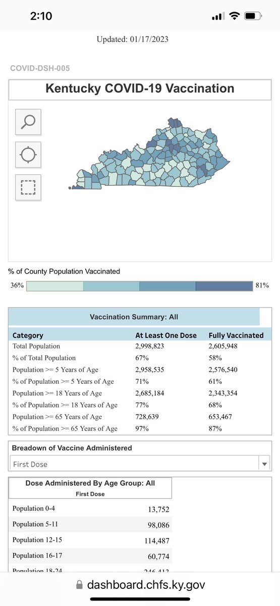 Kentuckians continue to die from COVID by the bushel week in and week out, while refusing the COVID vaccine chfs.ky.gov