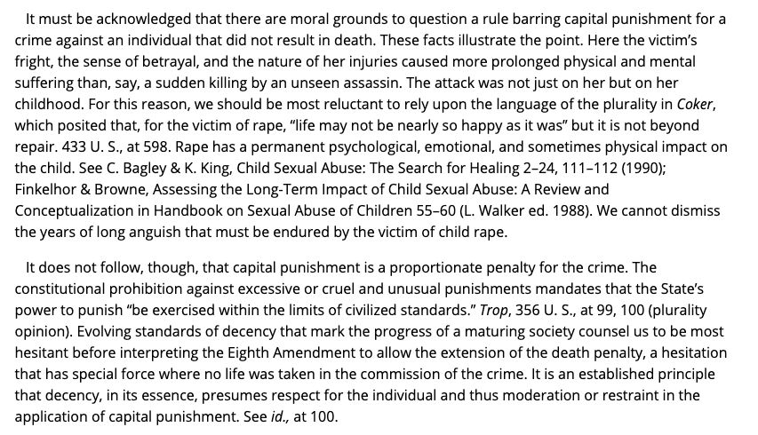 So next time you see the most heinous crimes against children committed and wonder why we can't just kill such people, know it's because liberals on the Supreme Court decided that sparing them was the only way we could be a fully evolved society. Voters have no say in the matter.