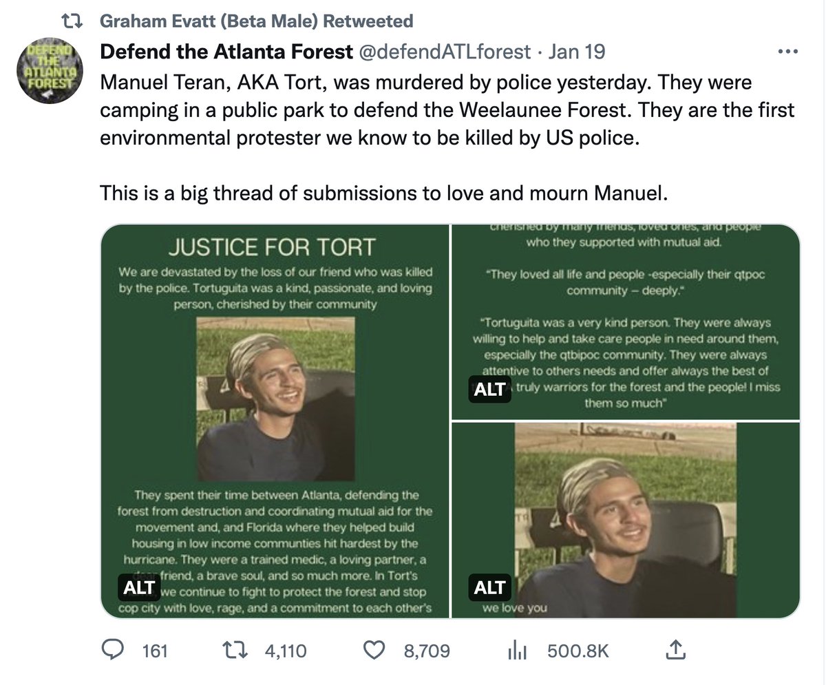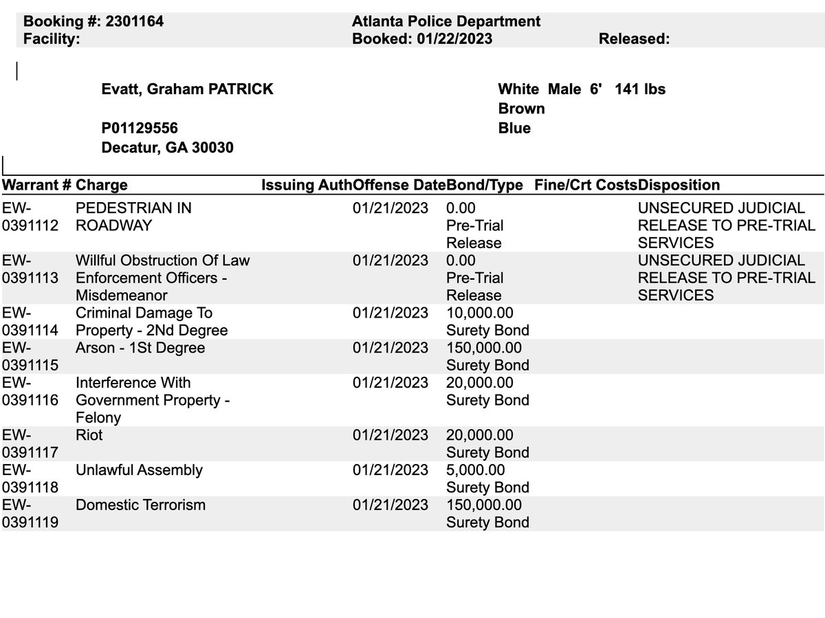 #Atlanta terror suspect Graham Patrick Evatt (he/they), 20, from Decatur, Ga., was released after his $355k bail was quickly paid. He posted support of the deceased terrorist gunman from his Twitter account & followed far-left accounts. archive.is