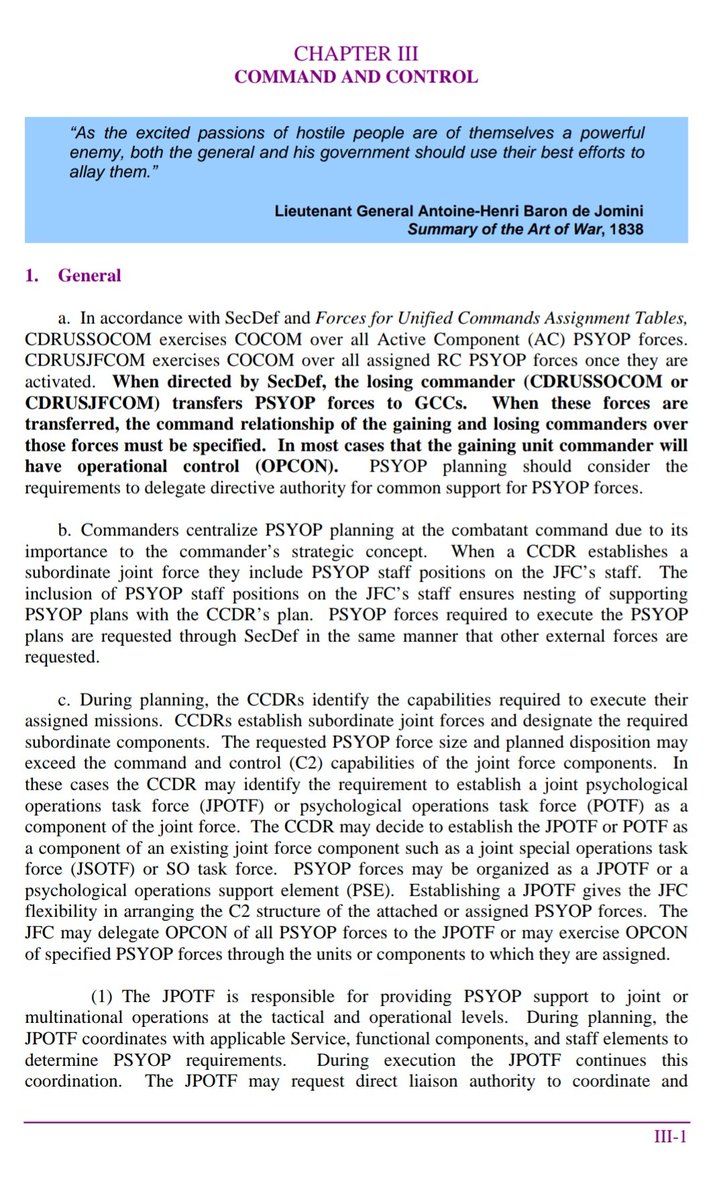 2. From Chapter 1 - "PSYOP play an important role in DOD communications efforts through the