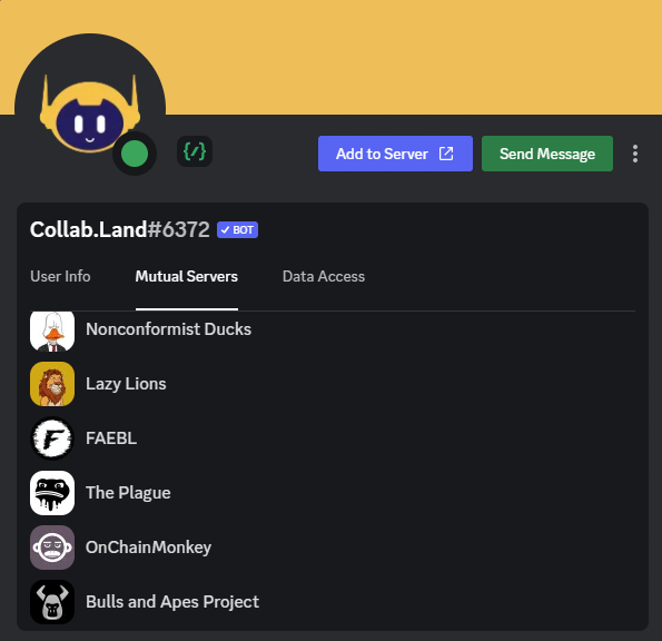 THIS is the legit collabland Bot. Check for Mutual Servers, and make sure there are a few in there!