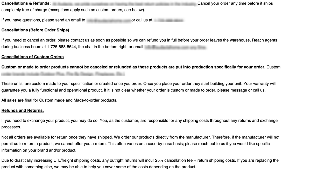 For these kinds of policies, I simply recommend mirroring your supplier's policies.