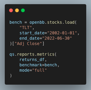 Now you can get data, backtest the strategy, and analyze the results to test the performance of your strategies.