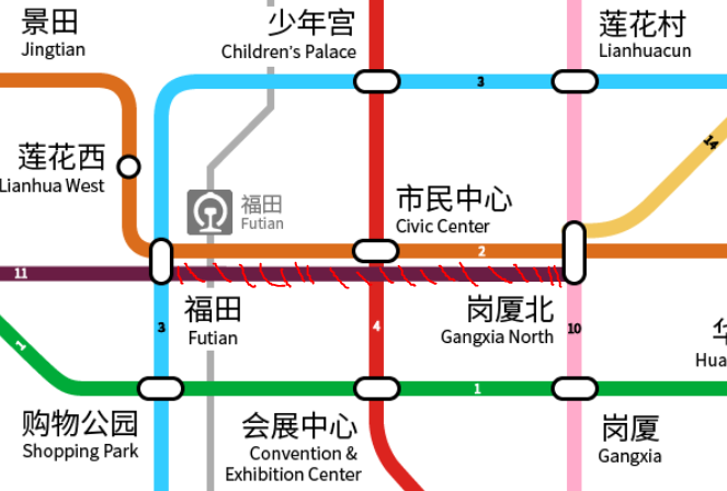 ...terminus and head to Gangxia N and transfer again to L10 and L14. Mad propz to Shenzhen Metro for forseeing this and expediting/prioritizing that short section of the L11 EB ext project to remove that "missing link" in Shenzhen's express network on day one of opening. (11/12)