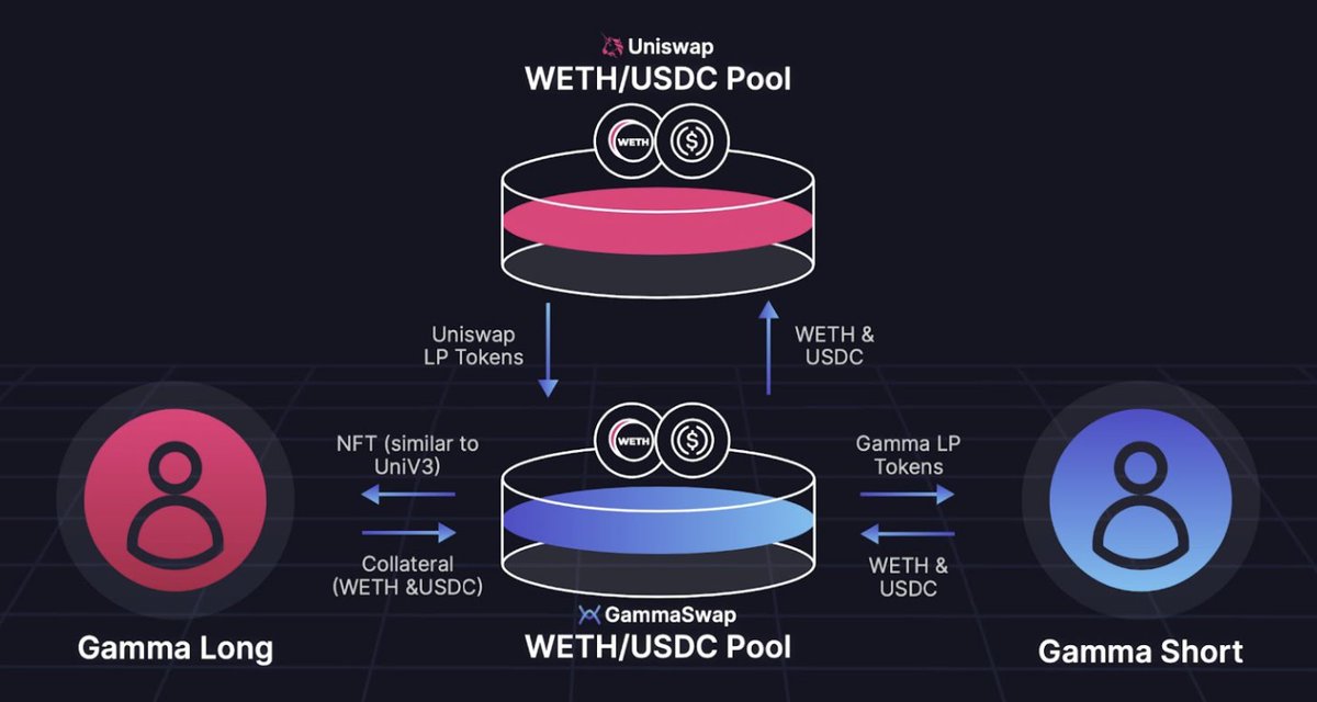 22/ Borrowers (long gamma) supply the underlying assets of the LP token as collateral and “borrows” LP tokens from Gammaswap (represented by an NFT position).