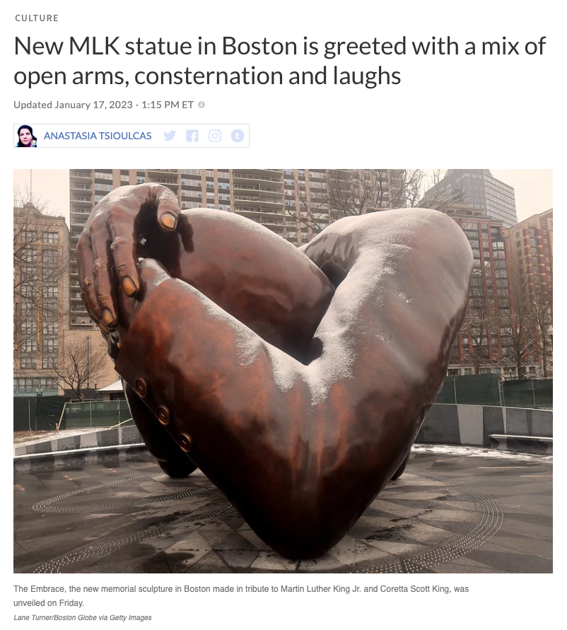 The first image is of the new headless MLK statue, which even its defenders can't really defend[1].