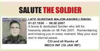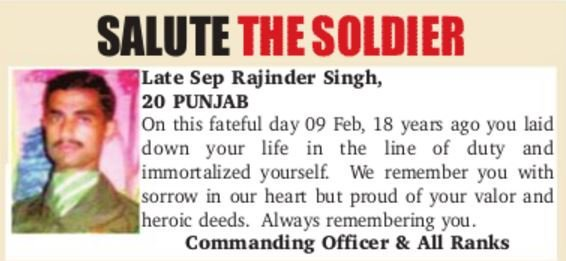 This 'Grinder' was a mere 23 years and 3 days old when he sacrificed himself for the Motherland, this day 25 years ago. Still remembered by comrades, who pray for Moksha for him.
