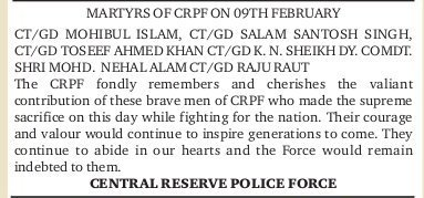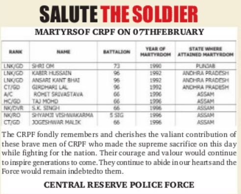 Martyrs of CRPF - 10 Feb