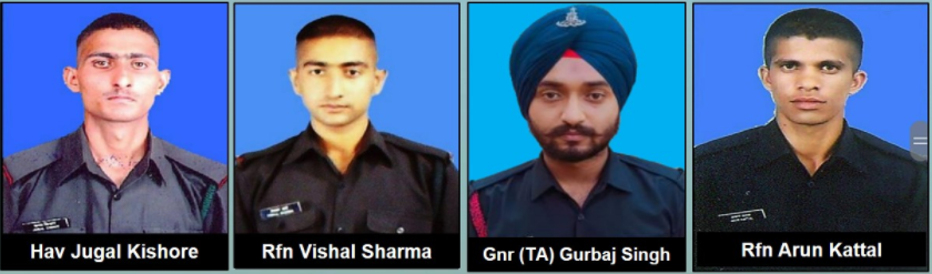Capt Kapil Kundu, Hav Roshan Lal, Rfn Subham Singh and Rfn Ramavtar.