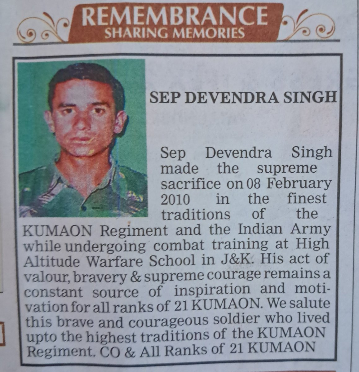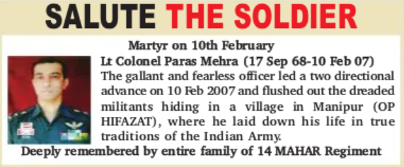Martyred this day five years ago in a ceasefire violation by Pakistan Army in Bhimber Gali Sector in Rajauri, J&K.