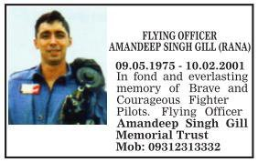 Flying Officer Amandeep Singh Gill - martyred this day in 2001 in a MiG 21 crash in Bhuj.