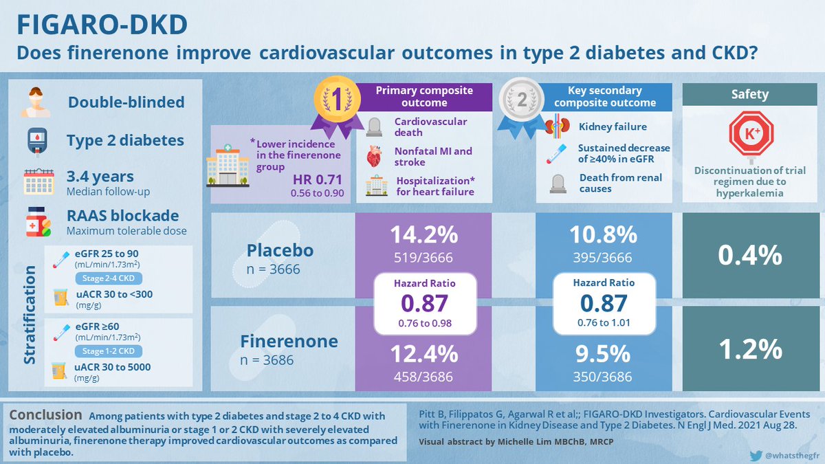 - #T2D+#CKD+#albuminuria on max. tolerated ACE/ARB,adding #Finerenone is recommended for CV & CKD protection