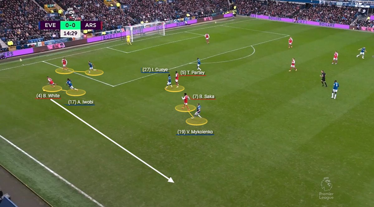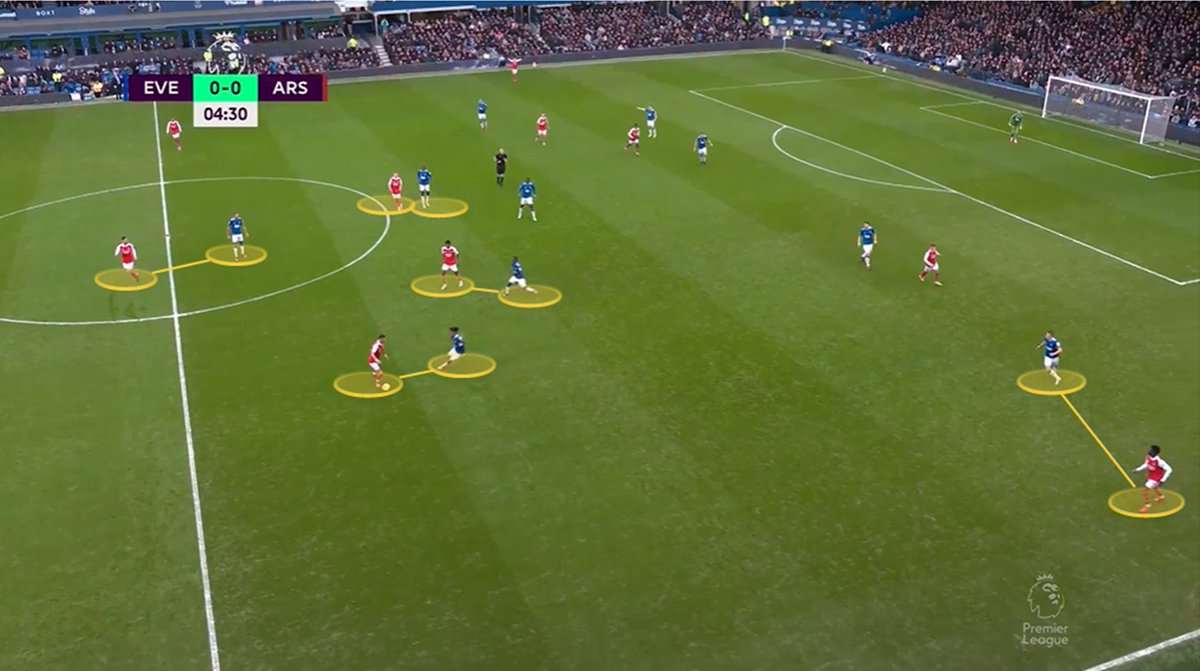 Another way Arsenal could've perhaps responded is Nketiah's movement corresponding to whichever side Arsenal wanted to get an overload on, it could've dragged Coady-Tarkowski out and opened up spaces. The changes from Arteta did somewhat look to do this