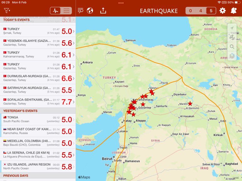 5/2/23 - Türkiye Suriye yakınlarında çok güçlü deprem sınırı (M7.8/M8.1). Umarız herkes güvendedir
