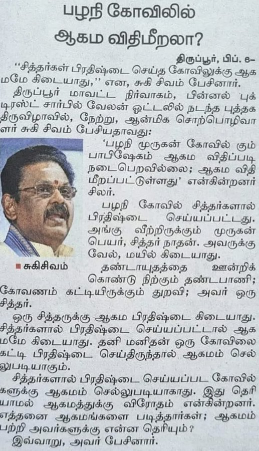 He recently spoke in favor of HR&CE being in control of all Hindu temples, taking uncharitable jibes at KA for suggesting otherwise.