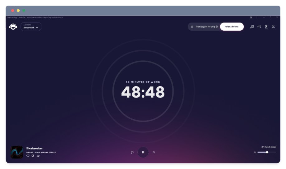 Listen to Brain FM to enhance your deep work sessions.