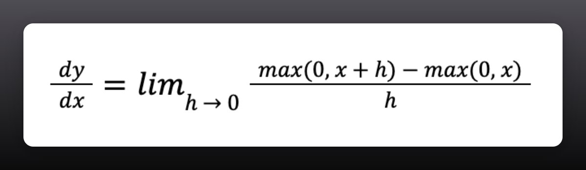 For ReLU to be differentiable, its derivative should exist at x = 0 (our problematic point.)