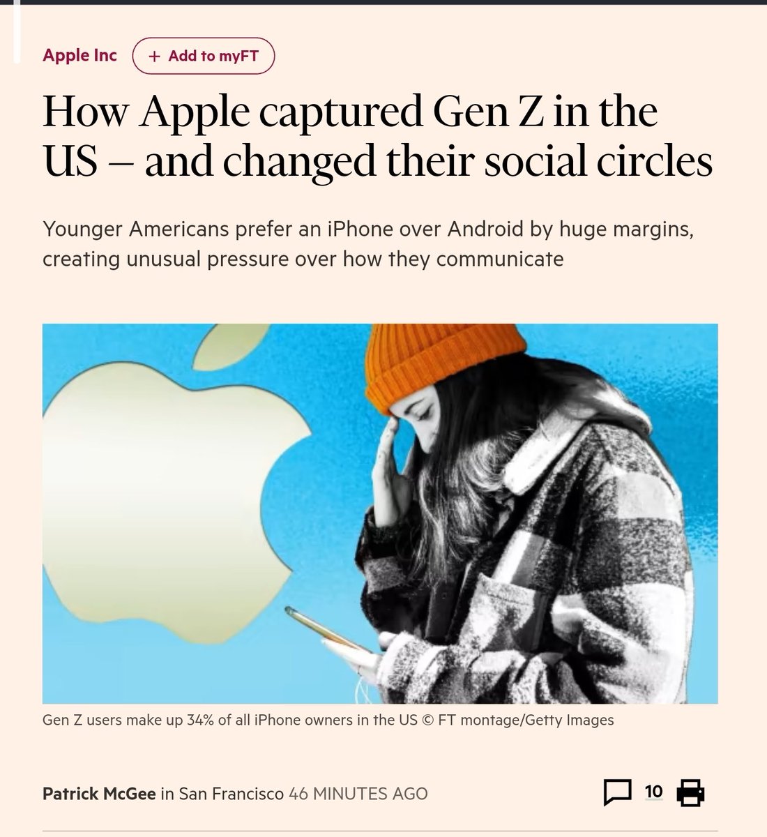 โApple has captured Gen Z in the US so thoroughly that younger consumers fear being socially ostracised for not having an iPhone, a trend that will allow the tech giant to gain market share across multiple product categories.โ @PatrickMcGee_