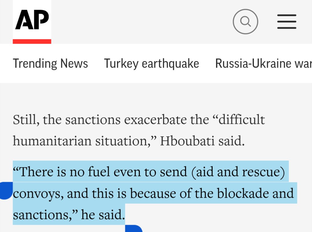 If US sanctions don't prevent humanitarian aid from getting to Syria, why would the US need to temporarily suspend them? ๐ค
