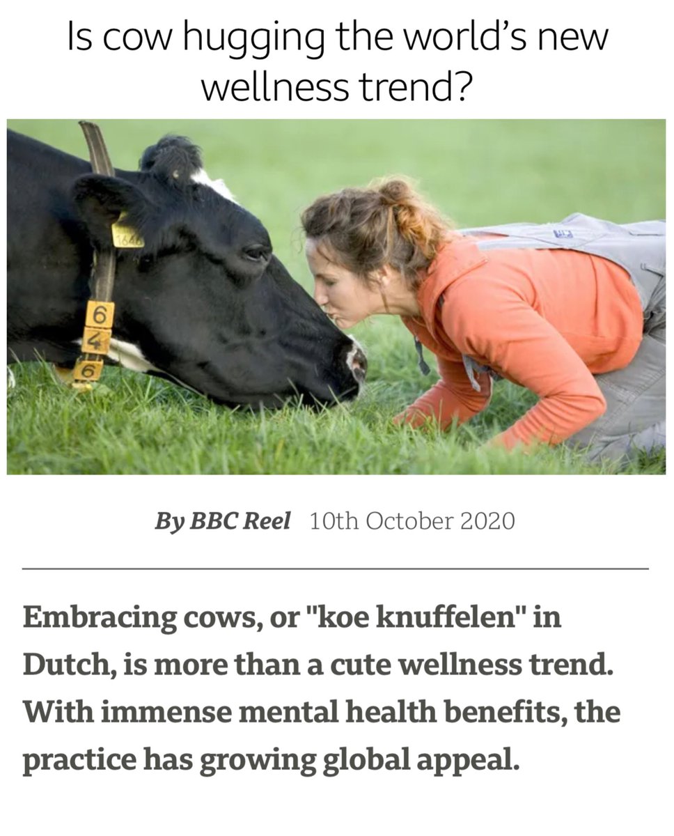 Let me remind BBC cartoonist @Kirtishbhat who is making fun of Animal Welfare initiative “Cow Hug Day”, that in 2020 BBC Healthy Living published a video on subject how the Cow hugging is becoming the world’s new wellness trend.