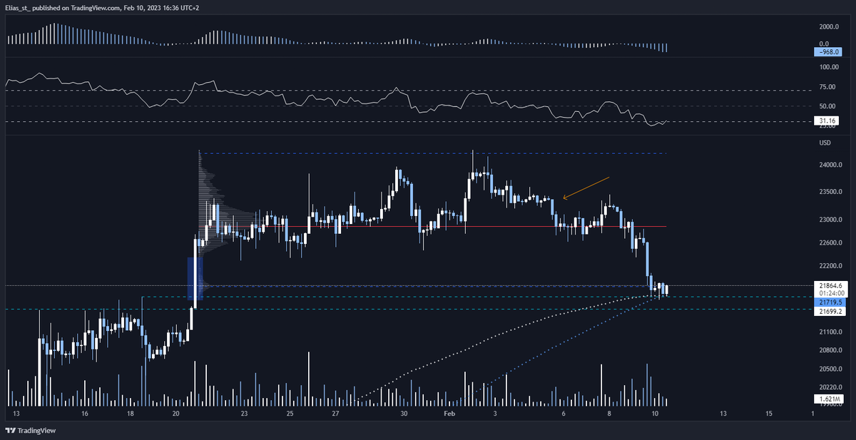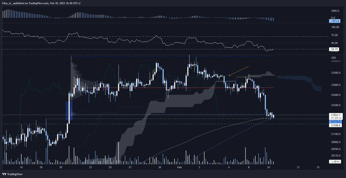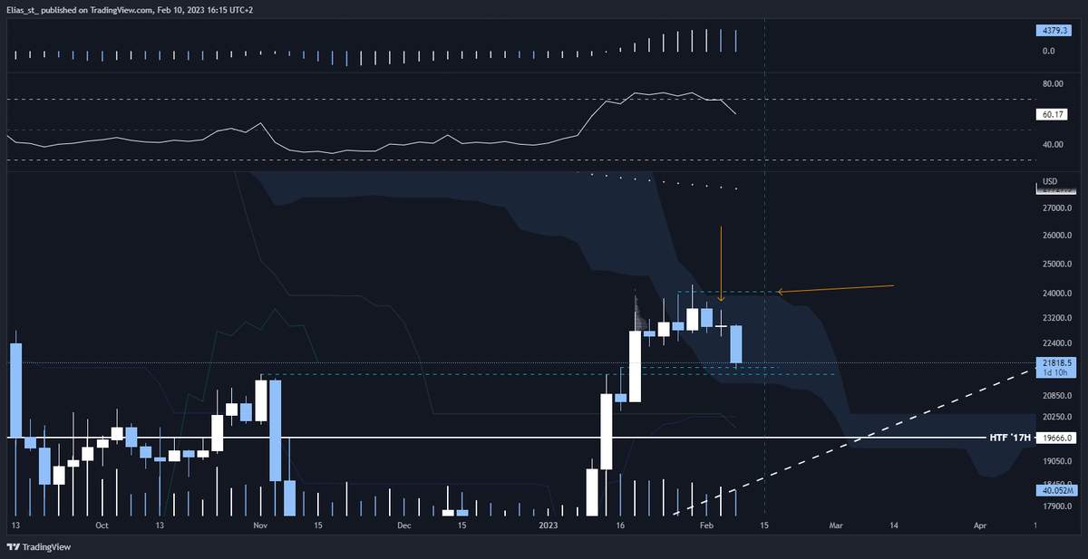 The last closed candle doesn't give a clear signal of the buying/selling dominance. For more clarity, will be looking for the current one to close In best case scenario, candle close above 24000, not wick - where the Senkou-Span B is This will give me a lot of peace Next 👉