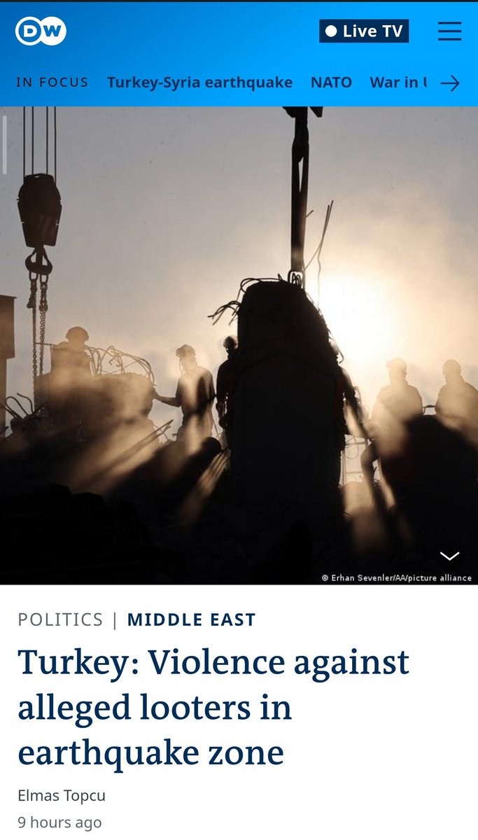 On Saturday, Gizem, a rescue worker from the southeastern province of Sanliurfa, said she had seen looters in the city of Antakya. "We cannot intervene much, as most of the looters carry knives."